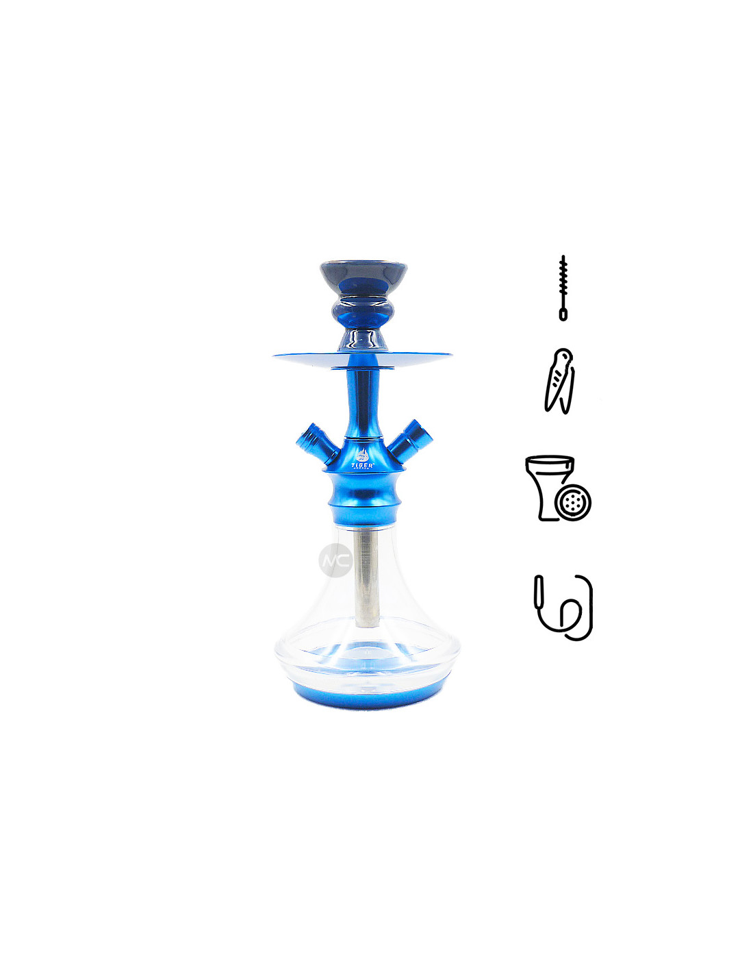 La chicha Tiger 330 est un modèle de 33cm de haut facilement transportable avec un vase en acrylique évitant les risques de casse.