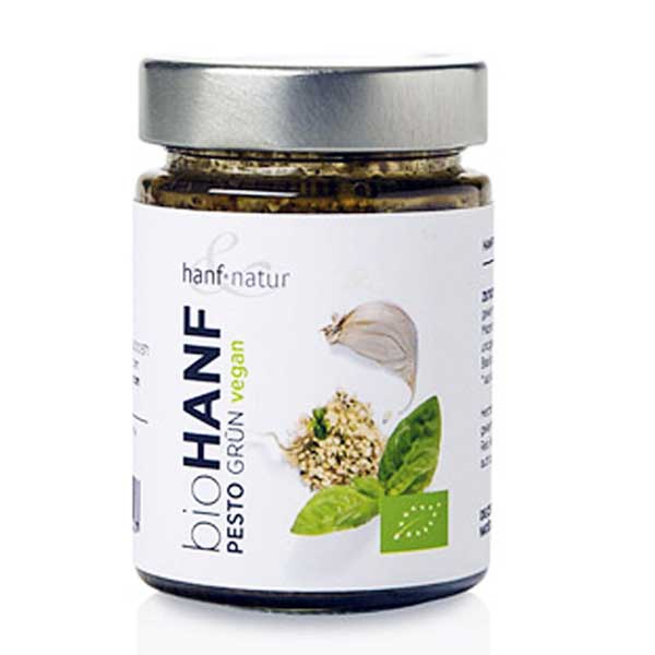 Le Pesto végan Basilic au chanvre est un copieux pesto sans fromage, à base de graines de chanvre décortiquées et torréfiées, de tomates séchées et de basilic. Il s’utilise comme sauce d’accompagnement dans vos plats de pâtes, de riz, de pommes de terre ou comme pâte à tartiner sur des crackers en apéritif ou en snack.